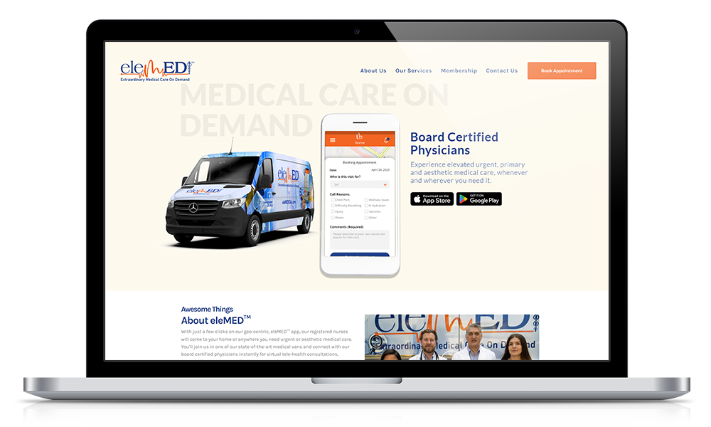 eleMED™ delivers an elevated doctor-patient experience for urgent, primary and aesthetic medical care, on demand. They provide you with a comprehensive range of medical services to help you achieve and maintain optimal health. With just a few clicks their geo-centric, eleMED™ app,  registered nurses will come to your home or anywhere you need urgent or aesthetic medical care.